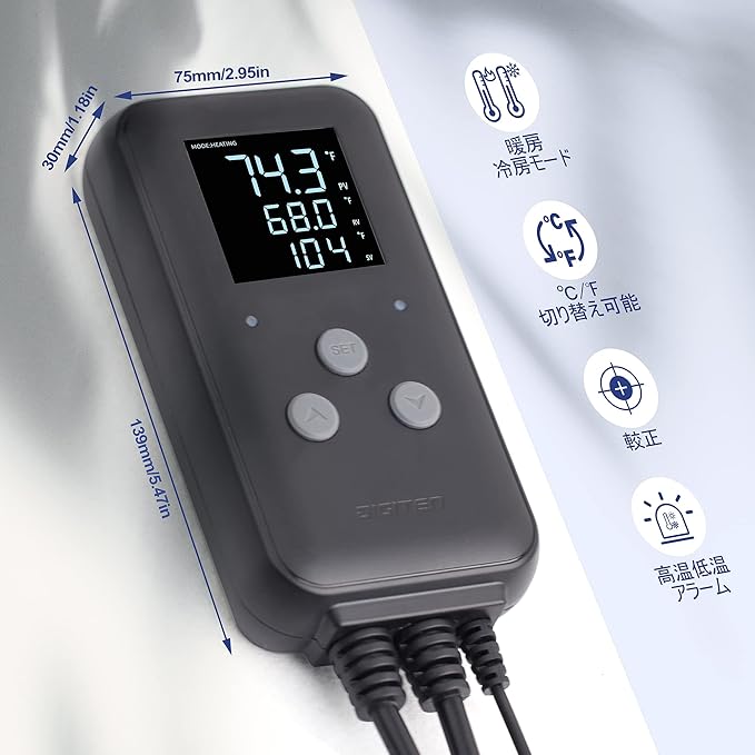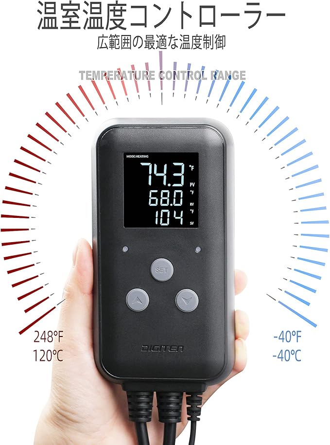 【理想的な温度制御】温度調節器は、-40〜248 F(-40℃〜120℃)の制御範囲内で、お好みの温度を調整および維持できます。温度を確実に追跡するための防水センサープローブが付属しています。