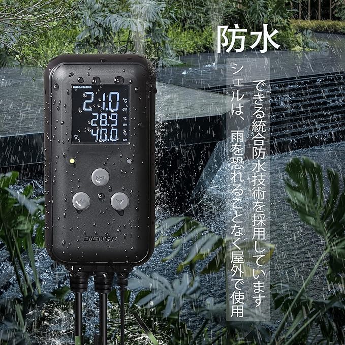 【IP65防水】温度コントローラーのシェルは、雨を気にせず屋外で使用できる統合防水技術を採用しています。