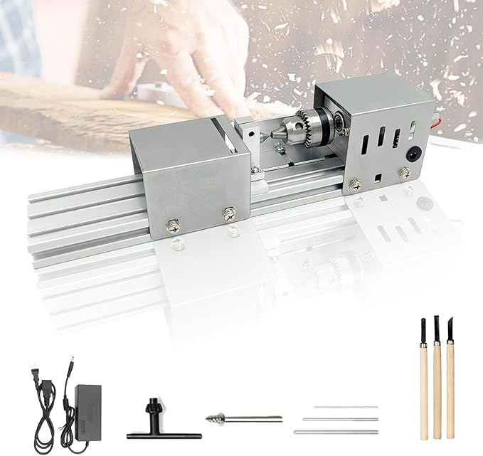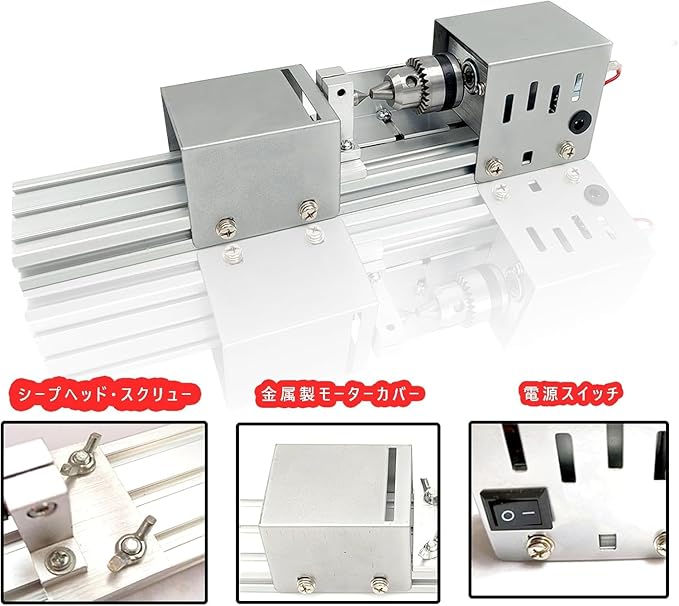 旋盤機 ミニ 木工旋盤 ミニグラインダー 研磨機 旋盤機 金属用 彫刻機 ミニポリッシャー 旋盤 両頭グラインダー 多机能小旋盤 高精度 耐久性 DIY手作りセット旋盤 研磨研磨 仏珠打孔 ミニチュア彫刻 小型カット ミニ旋盤 日本語取扱説明書 [シルバー ・ キットA] | KAZESHOP