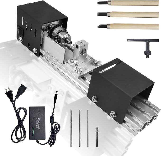 【高品質】ミニ旋盤は、高品質のアルミニウム合金ベース、高精度のドリルチャック、超対流冷却穴付きのステンレス鋼製ダストカバーで設計されています。 CXCESNS 木工旋盤は場所を取らず、テーブル上で作業が可能です。