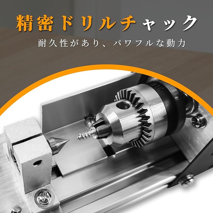 【製品仕様】旋盤サイズ:35*8*6cm。重量:1.5KG。素材:スチール。パワー:125W。速度:2000-8000 rpm、7段階の速度調整。ドリルチャック範囲:0.6-6mm。最大クランプ長さ:140mm。最大回転直径:55mm。