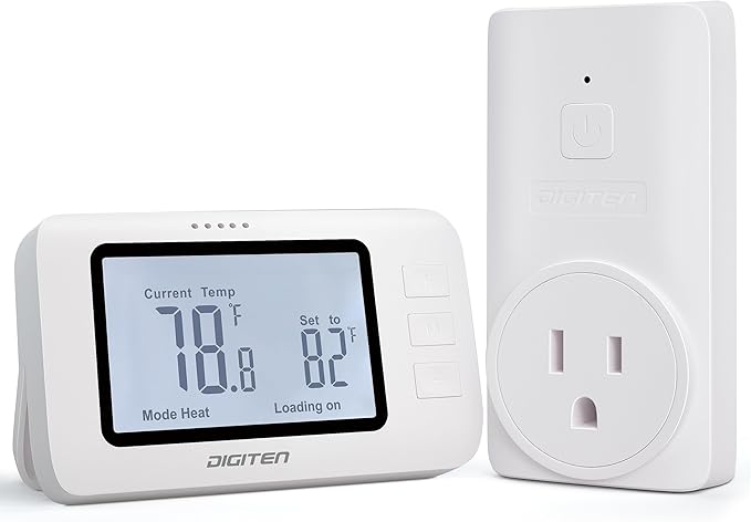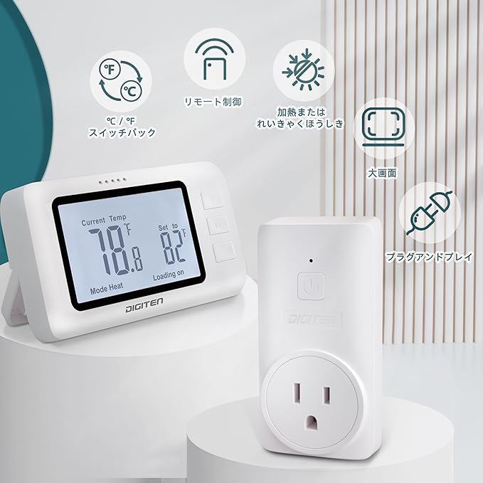 DIGITEN ワイヤレスサーモスタット WTC100 プロ温度コント ローラー冷房 & 暖房、リモコン コンセント、使いやすい、プログラム不可能なサーモスタット家庭用,ホワイト,ワイヤレスRFリンク | KAZESHOP
