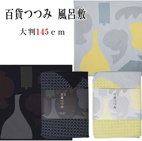 様々な品物や道具(百貨)を包み持ち運べる大きなサイズのふろしきです。着物をたとう紙のまま包んで持ち運ぶこともできます。包む方向により印象が変わるように工夫されたデザインで、ふろしきとして使用するだけでなく、テーブルクロスやソファーカバーなどインテリアクロスとしてもご利用いただけます。今回のデザインは、七福神に関連したモチーフやご利益をデザインに取り入れているので、ギフトとしてもおすすめです。