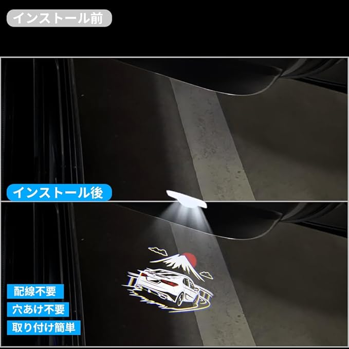 【用途】足元の地面がスクリーンとなり、愛車のロゴを美しく映し出します。