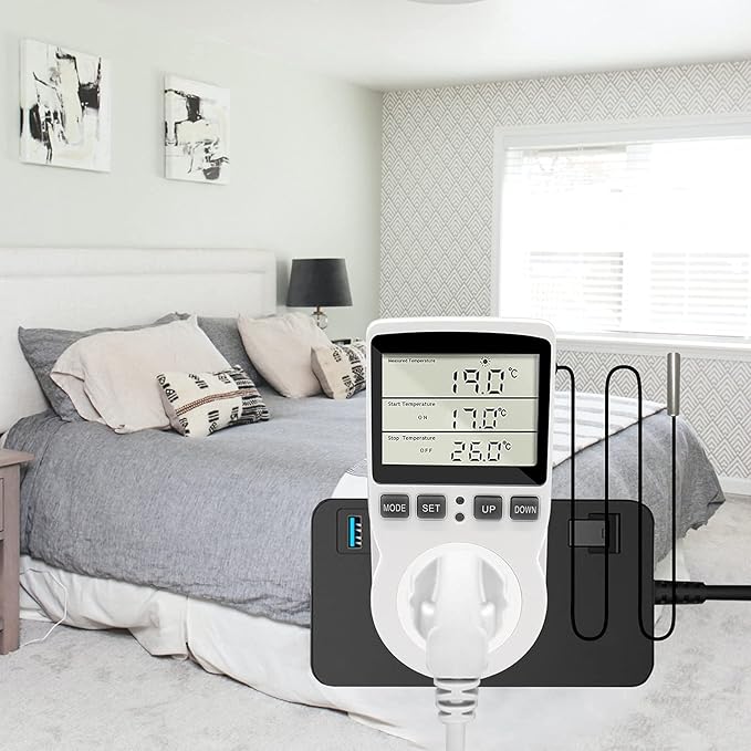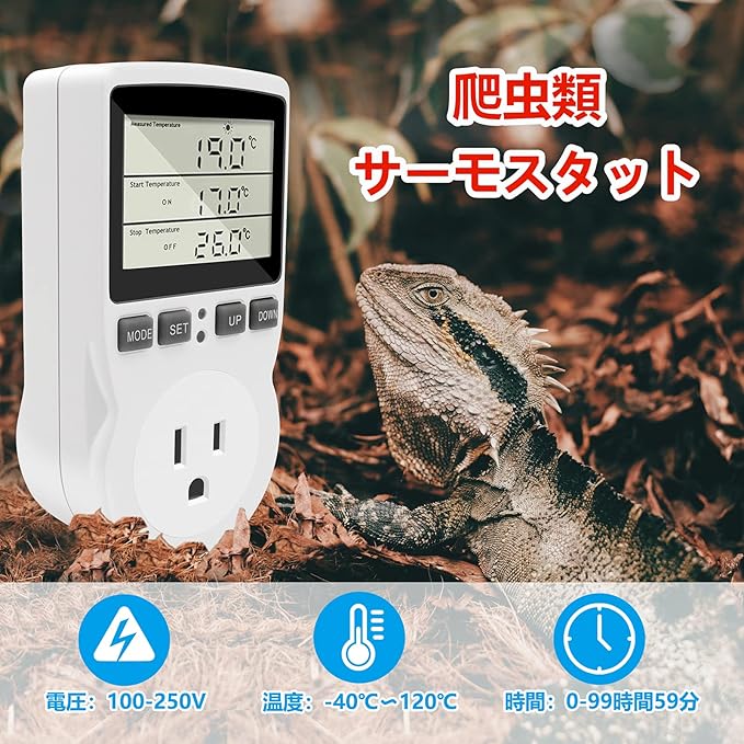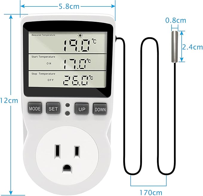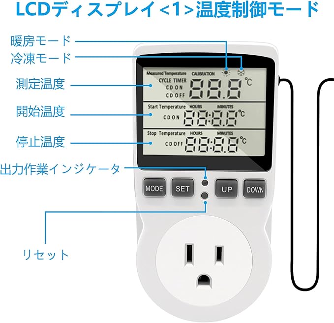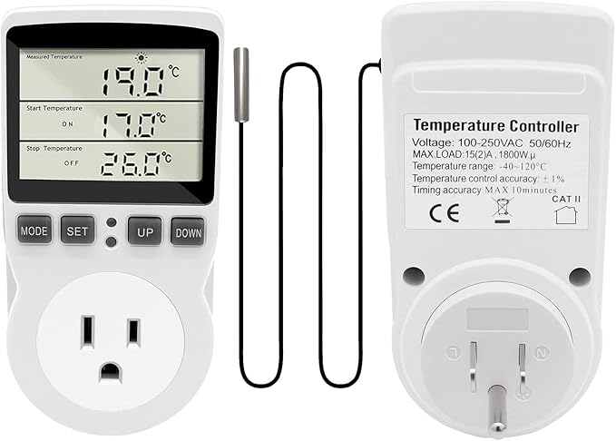 RUIZHI センサー付きスマート水族館温度制御ソケット デジタル温度制御スイッチカウントダウン 大画面アメリカ標準温度制御検出器 水族館サーモスタット 爬虫類冷蔵庫 温室種子発芽摂取タイマー | KAZESHOP