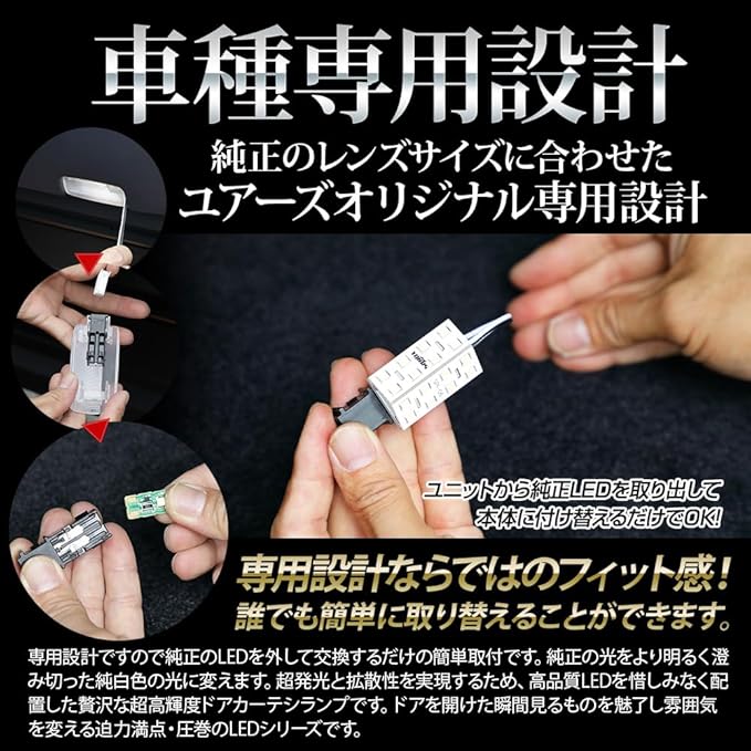 交換できないと思っていた純正LEDカーテシを格段に明るくする専用ドアカーテシランプ。