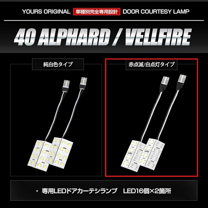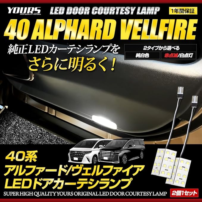 YOURS(ユアーズ) 40系 アルファード/ヴェルファイア LED ドアカーテシランプ 【赤点滅・白】2個セット ドア カーテシ ルームランプ 純正LED 室内灯 ALPHARD VELLFIRE カスタム アクセサリー トヨタ TOYOTA y506-042 [2] M | KAZESHOP