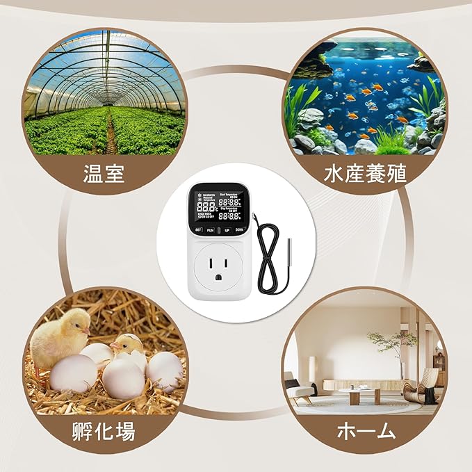 【幅広い用途に対応】このサーモスタットは、野菜の恒温ハウスやキノコハウスの環境制御、孵化場や栽培栽培槽の温度調節、自家醸造やワインセラーの恒温管理、発酵室の温度監視、恒温水槽や水族館の水の温度安定化、ペット飼育環境の温度調節、爬虫類や恒温鳥類、ウサギ小屋の恒温温度制御など、様々な場面で広く使用されています。 その多用途性と高精度は、さまざまな分野での温度制御に対する厳しい要求を満たすことができます。