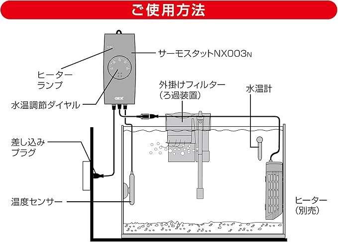 ・本製品のご使用には観賞魚用ヒーター(別売)が必要です。本製品だけでの使用はできません。 ・本製品はヒーター容量300Wまででご使用ください。