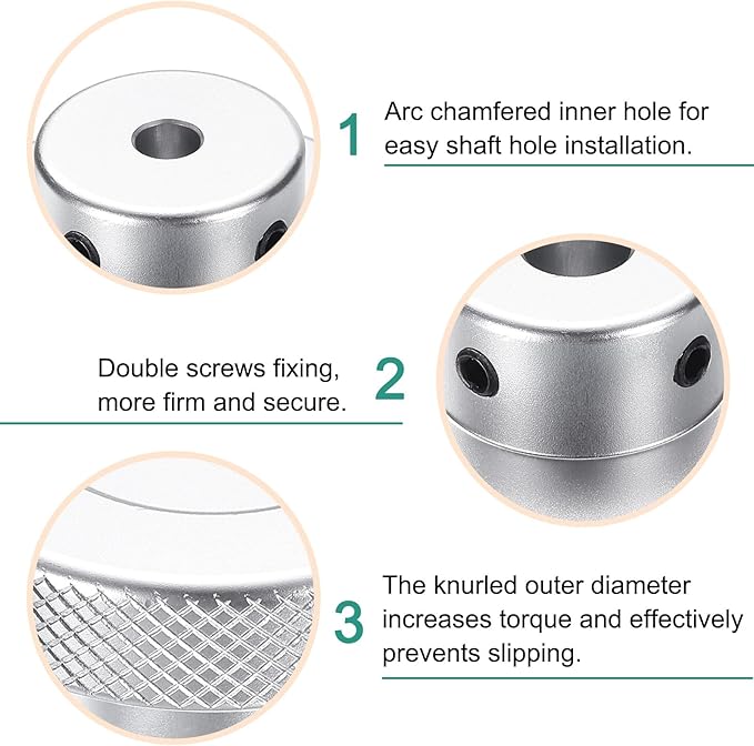 サイズ - 外径:50mm / 2"、ボア:6mm / 0.24"、高さ:25mm / 1"。軸を固定するための2本のネジが付属しており、より確実な固定を保証します。