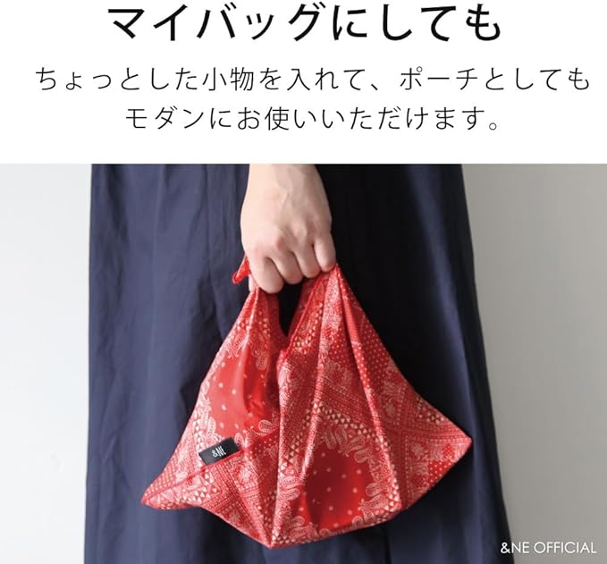 アンドエヌイー(&NE) あづま袋 刺繍レッド 日本製 幅34 高さ37cm 弁当袋 土産入れ ポーチ マイバッグ 手提げ 収納 雑貨 和柄 持ち運び おしゃれ かわいい レトロ モダン 贈り物 ギフト カラフル ランチバッグ 巾着 風呂敷 小物 NHK-047-RD | KAZESHOP