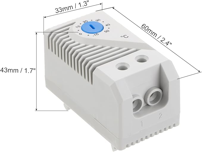 メカニカルサーモスタット1個入り;調整可能な温度:-10℃-50℃;電力:250V 10A;サイズ(縦 x 横 x 高さ):約60 x 33 x 43 ミリメートル / 2.4 x 1.3 x 1.7インチ