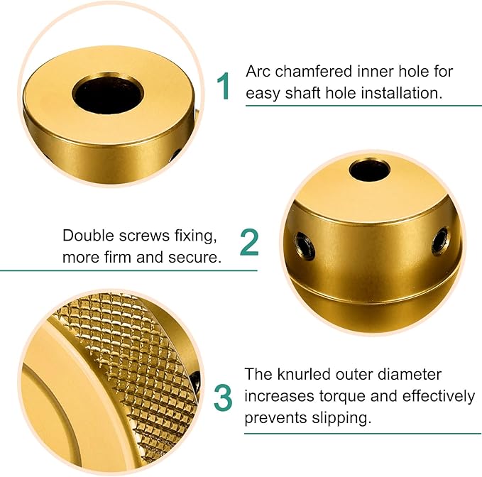内孔は軸孔取り付け用に円形の面取りが施されています。軸を固定するための2本のネジが付属しており、より確実な固定を保証します。