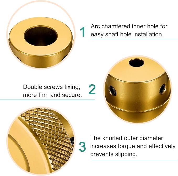 内孔は軸穴取り付け用に円形の面取りが施されています。軸を確実に固定するための2本のネジが付属しており、より安全な固定を確保します。