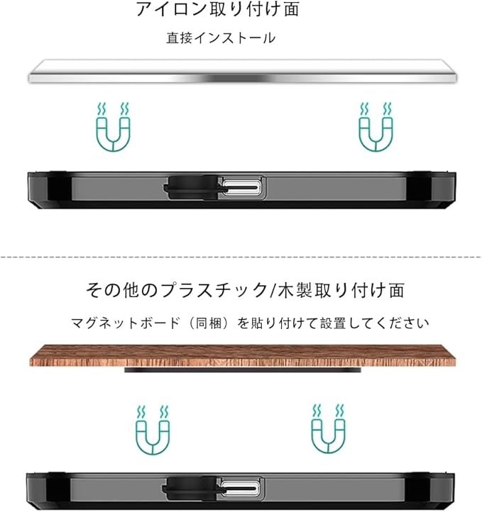 取り付け簡単:強力な磁石が内蔵されており、鉄の表面に直接取り付けることができ、パッケージにはステッカー付きの鉄シートが含まれており、プラスチックや木材などの他の表面に取り付けることができます。