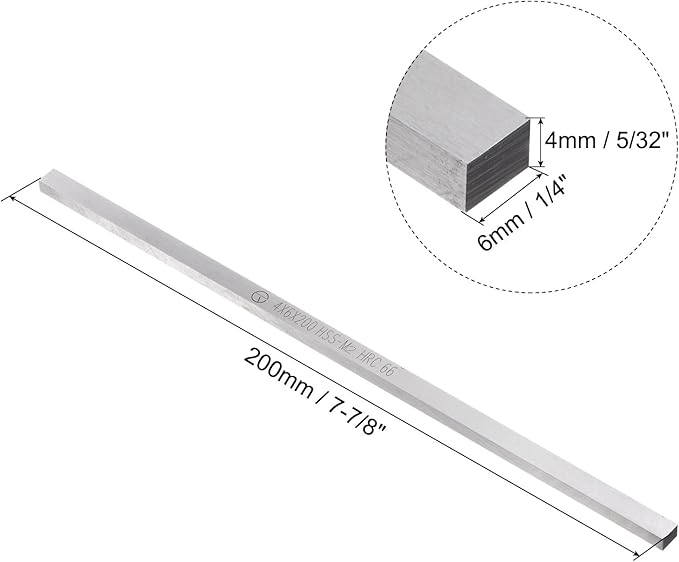 旋盤工具ビット: サイズ: 4mm x 6mm x 200mm / 5/32" x 1/4" x 7-7/8"、硬度HRC66; 端の形状: スクエア