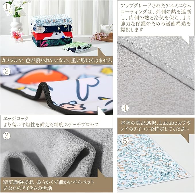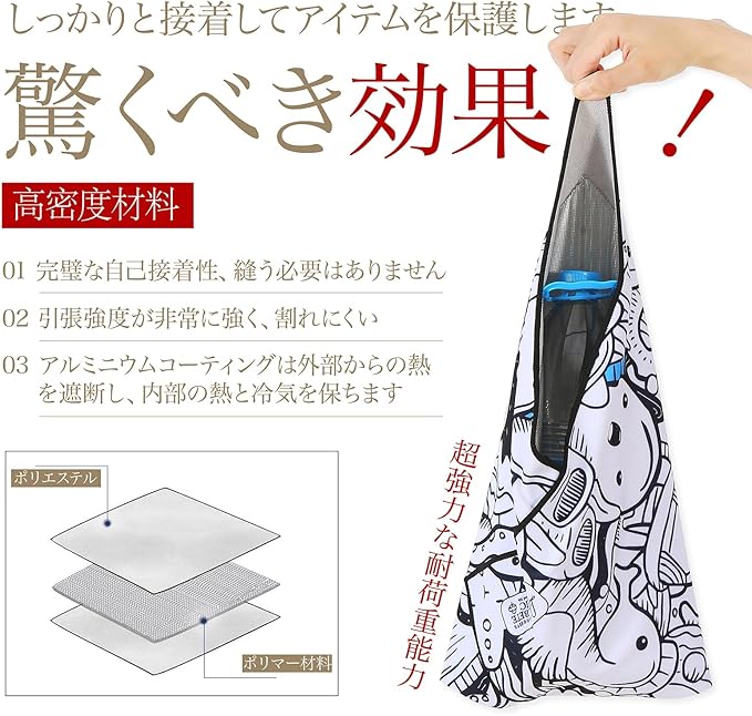[ピタッとくっつく保冷温クロス] 高密度構造の特殊な生地で作られており、内側のアルミコーティングでしっかり保冷&保温、サイズや形状に関係なく、あらゆるアイテムを包み込み、フィットし、ピタッとくっつく不思議な保冷温マルチクロス。