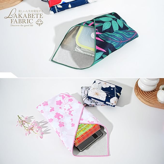 巻くだけ保冷ランチクロス ノーアイロン ピタッとくっつくクロス くっつきタオル 横50 縦50cm 風呂敷 お弁当包み 収納袋 整理袋として 弁当箱 化粧品 水筒 カメラ タブレット その他の日用品を包むのに使用できます 折り畳み 吸水 男の子 女の子 大人 (10 Pink Cherry Blossoms) | KAZESHOP