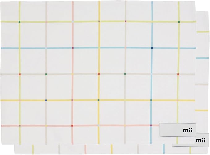 mii ミィ ランチクロス 綿 洗濯可 弁当風呂敷 名前タグ付(油性でも滲みにくい) 35 25cm 2枚組 グリッド柄 軽い 保育園 幼稚園 アウトドア 弁当箱 女性 子供 ホワイト 2101-0019 | KAZESHOP