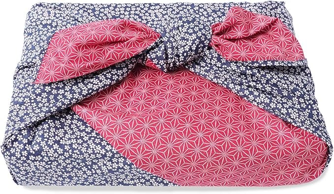[あめてまり] 風呂敷 リバーシブル【三巾 105cm】ふろしき 綿100% 大判 三幅 桜 花柄 和柄 おしゃれ かわいい 有職 小桜 麻葉 青赤 綿 小紋 両面 ふろしき 厚手 エコバッグ ピクニック キャンプ (ネイビーブルー カーディナルレッド 三巾 (約105cm)) | KAZESHOP