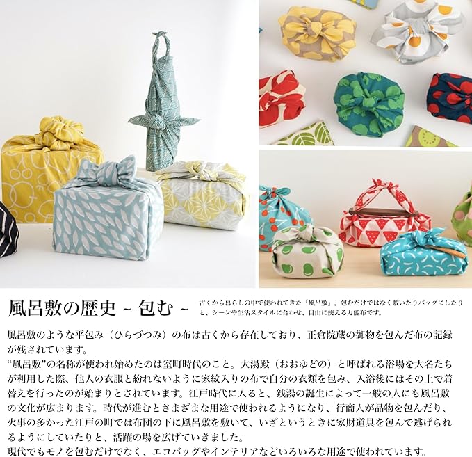 奈良時代より受け継がれてきた「包む」文化、そしてそのツールである「風呂敷」。 身の回りのいろいろな品を包む融通性に富んだ万能布、風呂敷は、包む・敷く・覆うなど、さまざまな使い方が。 あなたの日常に風呂敷を取り入れてみてはいかがでしょうか。