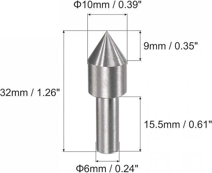 材料:45#鋼;仕上げ:黒い酸化物、プラムの直径: 10mm、プラム長さ:9mm;シャンク直径:6mm、シャンク長さ:15.5mm;全長:32mm ;センターヒントがあるかどうか:はい。