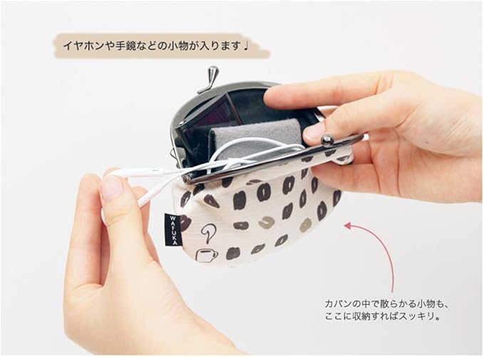 【3.3寸がま口ポーチ】 イヤフォン、カギ、指輪などの小物を入れておくと、カバンの中で迷子にならず便利です。
