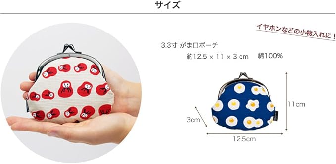 サイズ説明:3.3寸がま口ポーチ(12.5 11 3cm)、4寸がま口ポーチ(17.5 14 4cm)