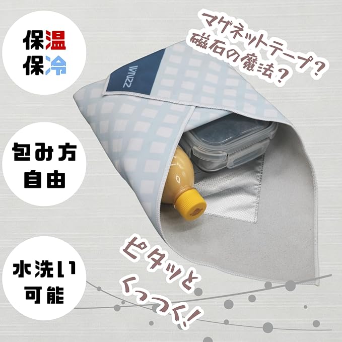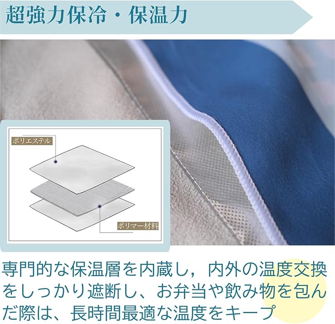 【薄いのに保冷/保温効果抜群】内側に純度の高いアルミシートがあるので、熱を逃しにくく、保冷剤と一緒にお弁当を包んだり、冷たいペットボトル飲料、冬の温かい飲み物やスープジャーを包めば、保冷/保温効果を発揮し季節を問わず、一年じゅう活躍してくれます。