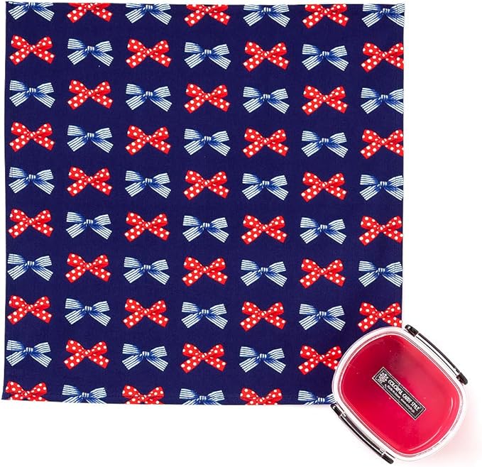 COLORFUL CANDY STYLE ランチクロス 女の子 2枚セット 給食 ナフキン お弁当 スタンダード 45 45cm 正方形 ポルカドットとストライプのフレンチリボン(ネイビー) N3941500 | KAZESHOP