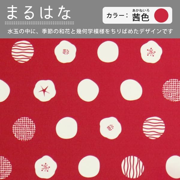・水玉の中に季節の和花と幾何学模様をちりばめたデザイン