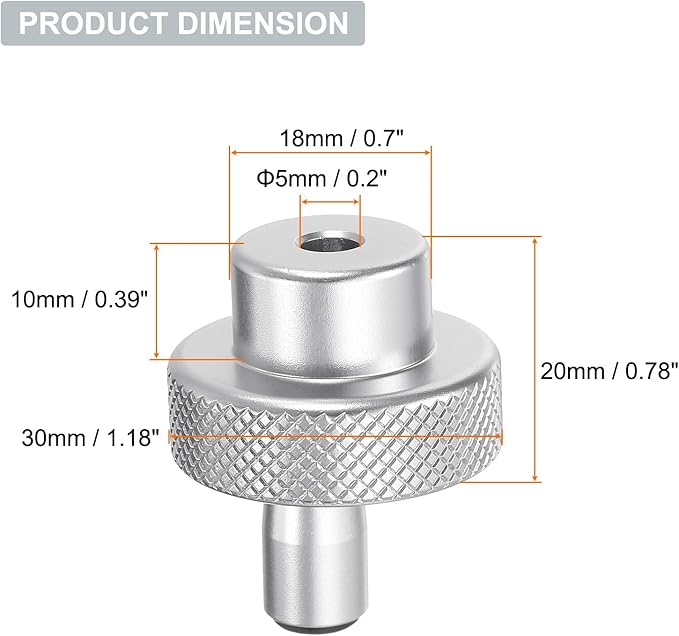 サイズ - 外径:30mm / 1.18"、ボア:5mm / 0.2"、高さ:ハンドル直径:18mm / 0.7"。軸を固定するための2本のネジが付属しており、より確実な固定を保証します。