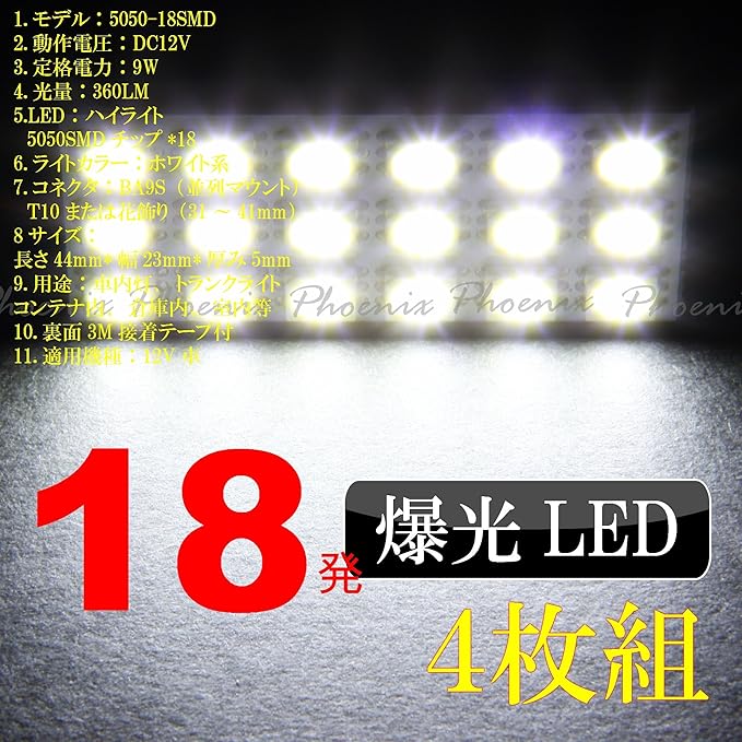 ✅【爆光5050:18smd:輝度:1個約360ルーメン:サイズ:44mm 23mm 厚5mm】まるで快晴の日の昼間のような明るさ!「めちゃくちゃ光る」ことで、お客様に大好評を頂いています。あなたもこのLEDルームランプで、さっそく車内をカッコ良くオシャレに仕上げましょう!既存のルームランプって、なんだか味気ないとは思いませんか?そうだったら迷わず付け替えてみて下さい。お部屋のインテリアと同じように、あなたのクルマの雰囲気がガラリと変わりますよ^^