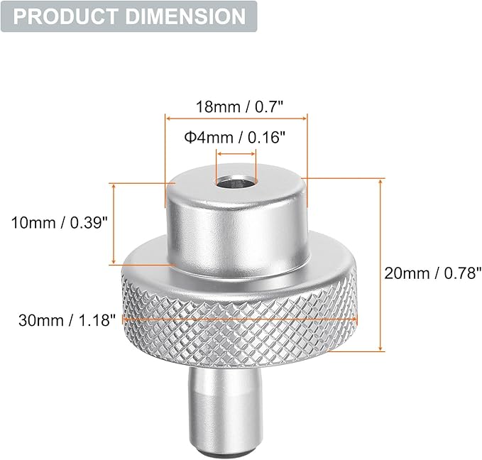 サイズ - 外径:30mm / 1.18"、ボア:4mm / 0.16"、高さ:ハンドル直径:18mm / 0.7"。軸を固定するための2本のネジが付属しており、より確実な固定を保証します。
