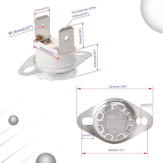 4) パッケージに含まれるもの: 4PCS X摂氏150度通常閉じたサーマルスイッチ。