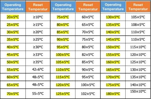 状態2: 温度制御スイッチ接点の元の状態は通常閉じています。温度が摂氏0度の定格温度を超えると、サーモスタットが伝导します。