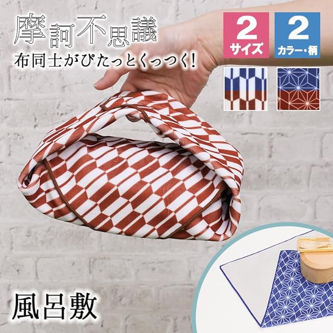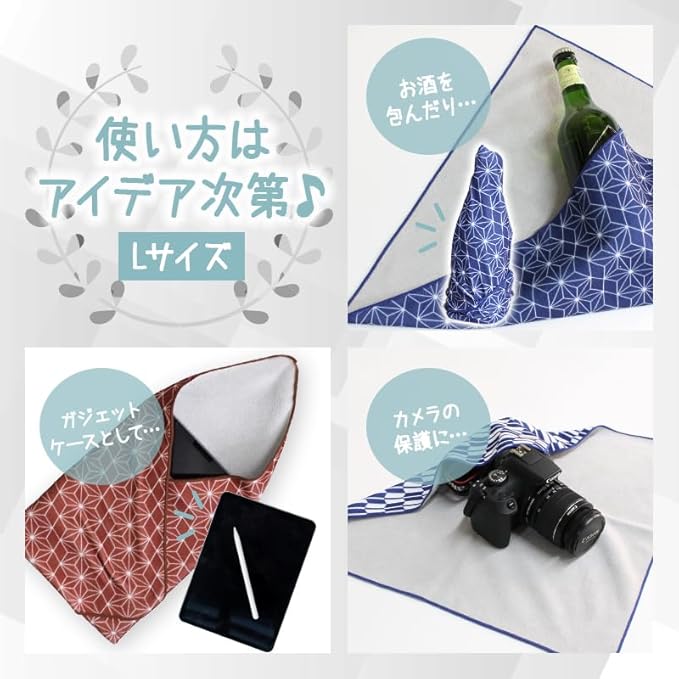 風呂敷 結ばない お弁当包み ランチバッグ 大判 おしゃれ 子供 ランチクロス 和柄 大人 布 ハンカチ 大きめ 可愛い 小さめ ランチバック 男性 (Lサイズ, ブルー・麻の葉) | KAZESHOP