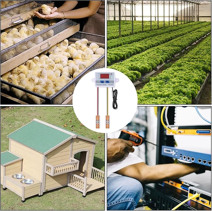 【操作が簡単で高効率】:このデジタル表示温度コントローラは、開始温度、停止温度、補正温度コネクタ、遅延開始を設定するための簡単な操作です。LEDインジケータライトは、現在の出力状態を表示できます。デジタル表示管は、測定された温度を表示できます。固定ネジ穴付きで、取り付けや固定に便利です。小型、低消費電力、高速応答