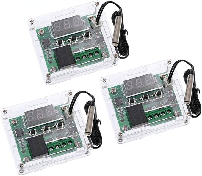 Ren He サーモスタット DC 12V 温度熱センサスイッチ -50~110℃ デジタル LED 温度制御 温度コントローラーボード XH-W1209 センサーケーブル+ケース付き 3個セット | KAZESHOP