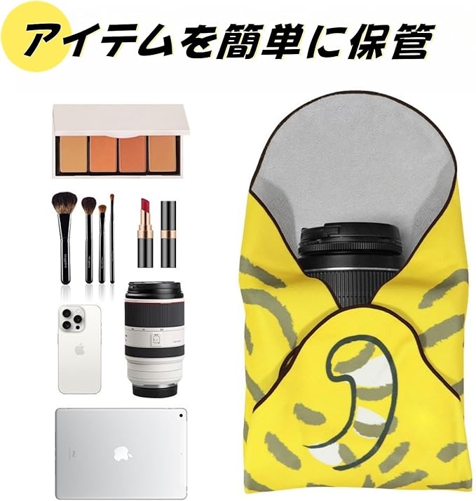 【多機能】カメラバッグは化粧ポーチとしても使え、必需品の収納に便利です。使いたいときに布を広げて取り出すだけ。使用後は包んで持ち運ぶこともできます。非常に便利で、整理の手間が省けます。忙しい朝でも気軽にお使いいただけます。