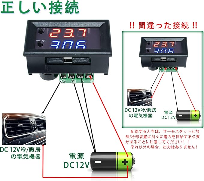 【パッケージング・アフターサービス】:パッケージには、1 * DiyStudio W1209WKデジタルディスプレイサーモスタット温度コントローラーが含まれています。そして1 * マニュアル。ご不明な点がございましたら、DiyStudioまでお問い合わせください。私たちは12ヶ月の保証を提供します。配線するときは、サーモスタットと加熱/冷却装置に別々に電力を供給する必要があることに注意してください! !それ以外の場合、出力はありません。Japaneseマニュアルが必要な場合は、製品ガイドとドキュメントからダウンロードしてください(リンク).ご不明な点がございましたら、カスタマーサービスまでお気軽にお問い合わせください。24時間以内に返信いたします。