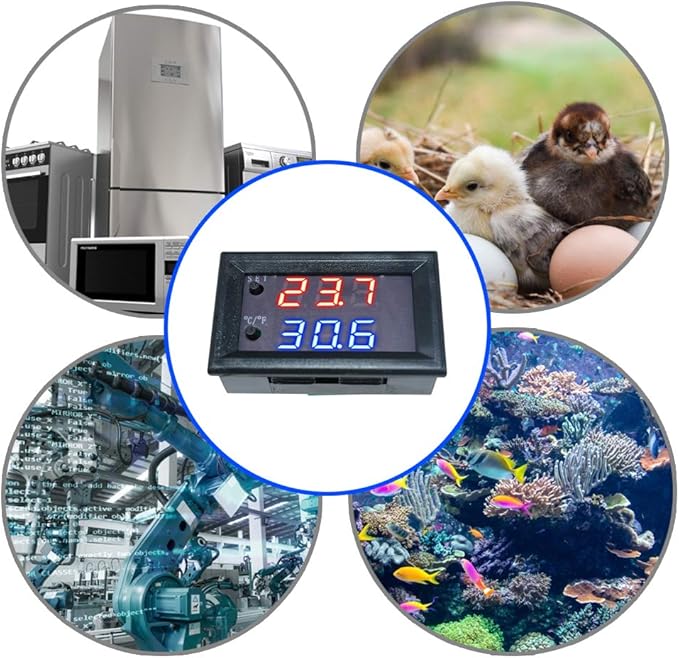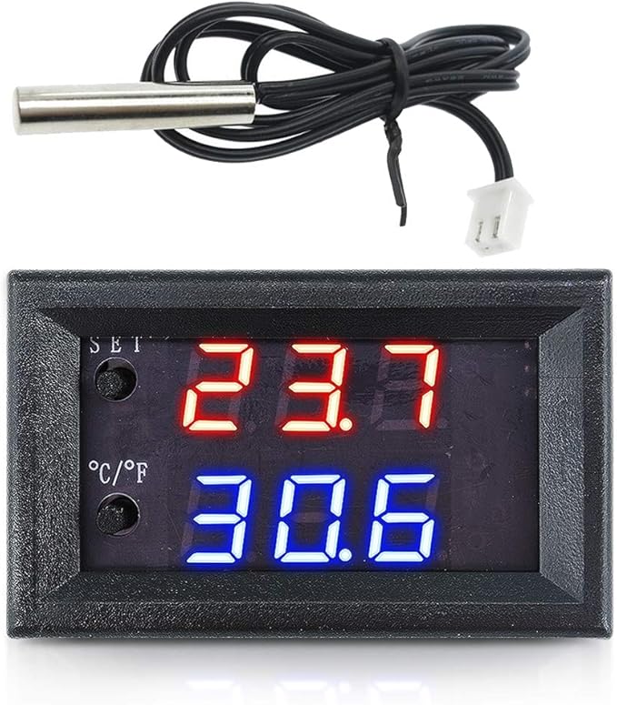 DC 12V LEDサーモスタット デジタル温度コントローラー, DiyStudio W1209-WKミニ制御温度計 -50℃~110℃、0.1℃の高精度測定用防水NTC温度センサー、温度調整可能なのスイッチモジュール、家庭用冷凍庫/水槽/飼育場/水族館に適しています(赤と青) | KAZESHOP