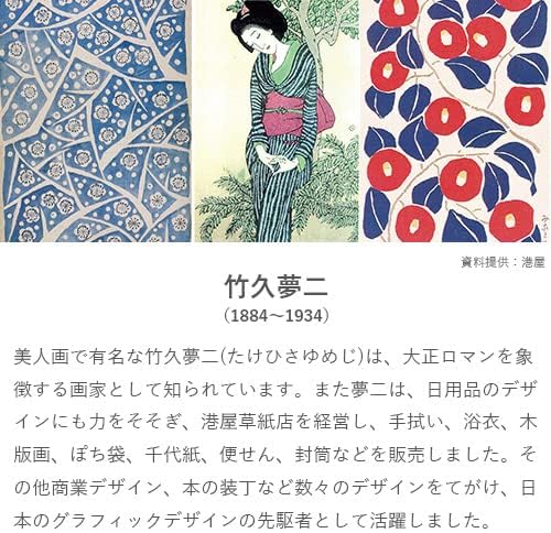 大正ロマンを象徴する画家である竹久夢二は、大胆な柄行きとポップでどこか懐かしい色使いが人気。
