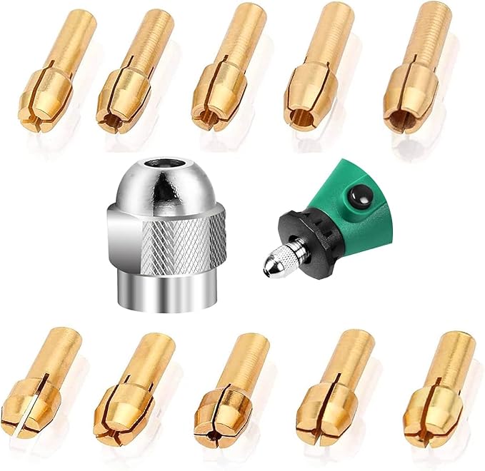 ✅複数のチャックサイズ:-チャックセットパッケージには、10個のチャック直径:1/64インチ、1/32インチ、3/64インチ、3/64インチ、1/16インチ、5/64インチ、5/64インチ、3/32インチ、1/8インチ、1/8インチ、1/8インチ(0.07 cm)が含まれています。0.5ミリ、0.8ミリ、1.0ミリ、1.2ミリ、1.5ミリ、1.8ミリ、2.0ミリ、2.4ミリ、3.0ミリ、3.2ミリ。0.5~3.2 MMのドリルに適しています。さまざまなサイズを選択でき、より多くの材料を研磨するのに適しており、さまざまなニーズに対応しています。