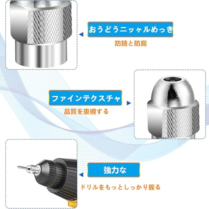 ✅真鍮チャック:ドリルチャックセットは一体式構造設計を採用し、高品質の真鍮と合金から作られ、プラスチックモデルよりも安全で、耐摩耗耐久性がある。真鍮チャックは精度を大幅に向上させ、細いドリルをより強固に固定することができる。高速回転で安定しているだけでなく、作業効率も向上しています。