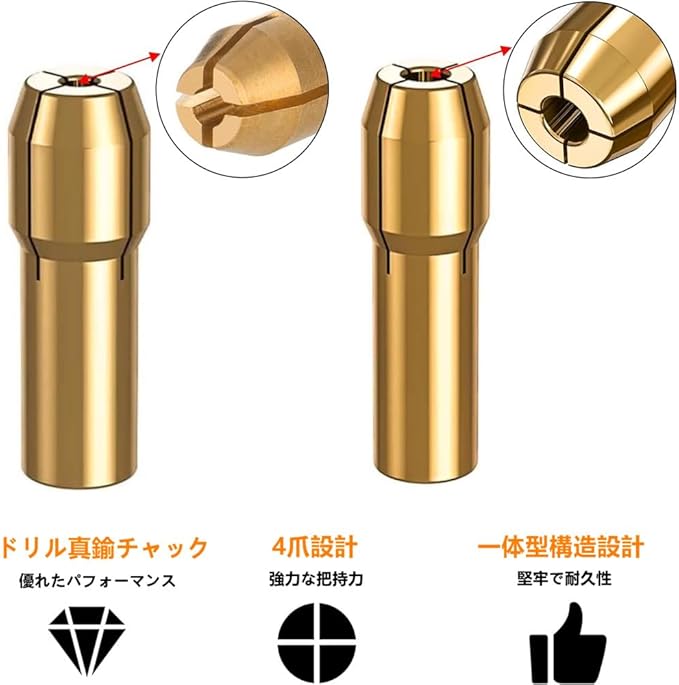 コレットチャック 回転工具セット用 ミニルーター用ドリルチャック互換コレットアレン 真鍮ドリルチャック ミニドリルアクセサリ 精度0.5-3.2mm 4爪设计 ミニドリルアクセサリー