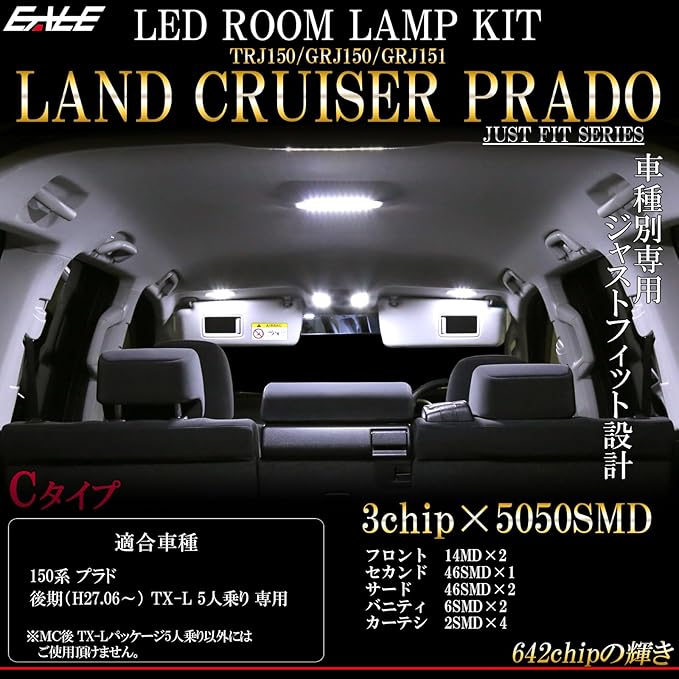 トヨタ 150系 ランドクルーザー プラド ホワイト 7000K ルームランプキット Cタイプ