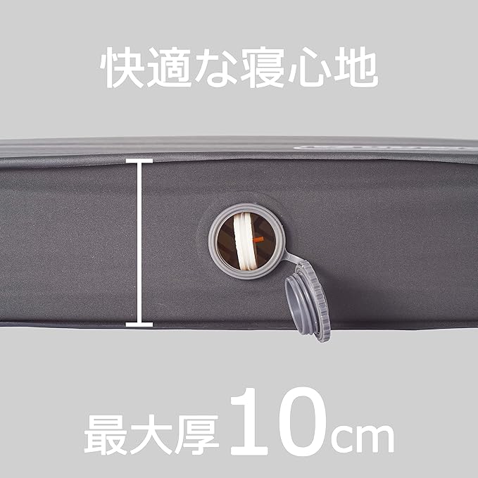 【厚さ10㎝のクッション】厚さ10cmのポリウレタンフォームは、地面の凸凹に影響を受けにくく、体圧を分散して身体を支えてくれるので、敷布団やベッドように快適に眠ることができます。また、地面からの冷気も伝わりにくくなりますので、寒い時期のキャンプでも安心して眠ることができます。