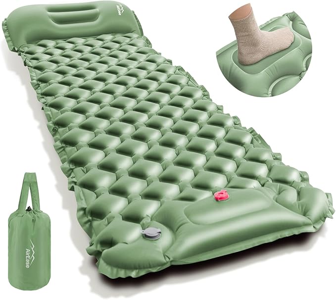 エアーマット キャンプマット 10CM厚【R値4.0・瞬間膨張】 足踏み式 エアーマット 軽量 防水 登山 車中泊 防災 折りたたみ式 収納袋付き グリーン