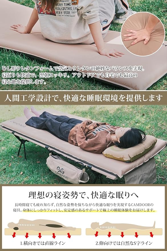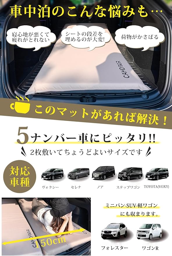 ✅ 【睡眠障害を解消】エアーベッドの幅がさらに広がりました。 幅82cm。 市販されている他のエアマットよりも幅が広いです。 使用時の寝返りも楽に行え、いつでもどこでも自宅のベッドのような「快適な寝心地」を作ることができます。 エアーベッドは2種類の厚みをご用意しております。 8CMと10CMの厚さで車内の段差や地面のデコボコを解消!底つき感もなく冬の気になる地面からの冷気もシャットアウトしてくれるので快適な睡眠を確保できます!